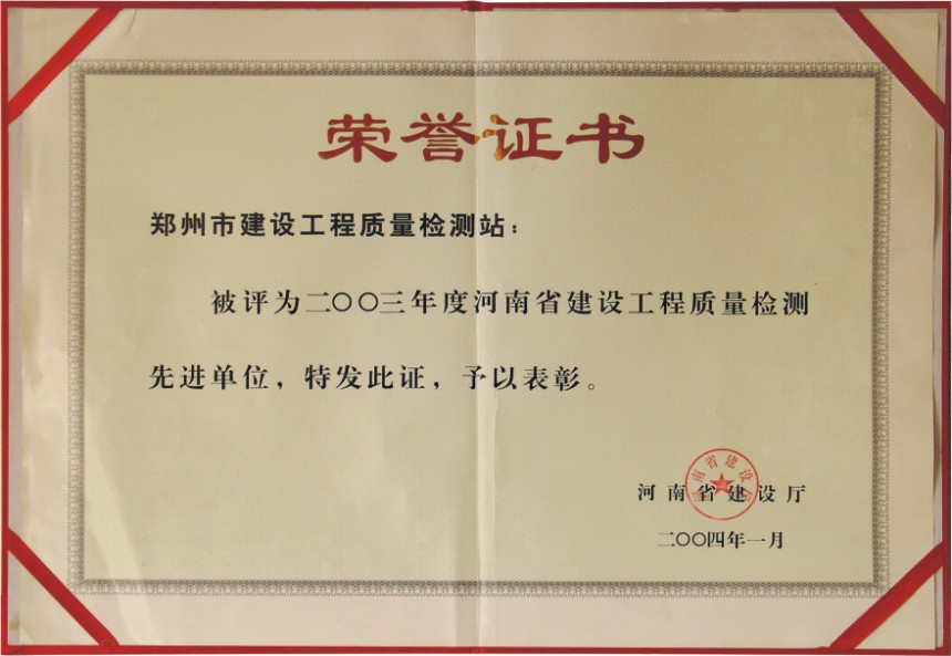 喜訊!我司榮獲2023年度鄭州市城鄉(xiāng)建設(shè)局工程檢測先進(jìn)單位